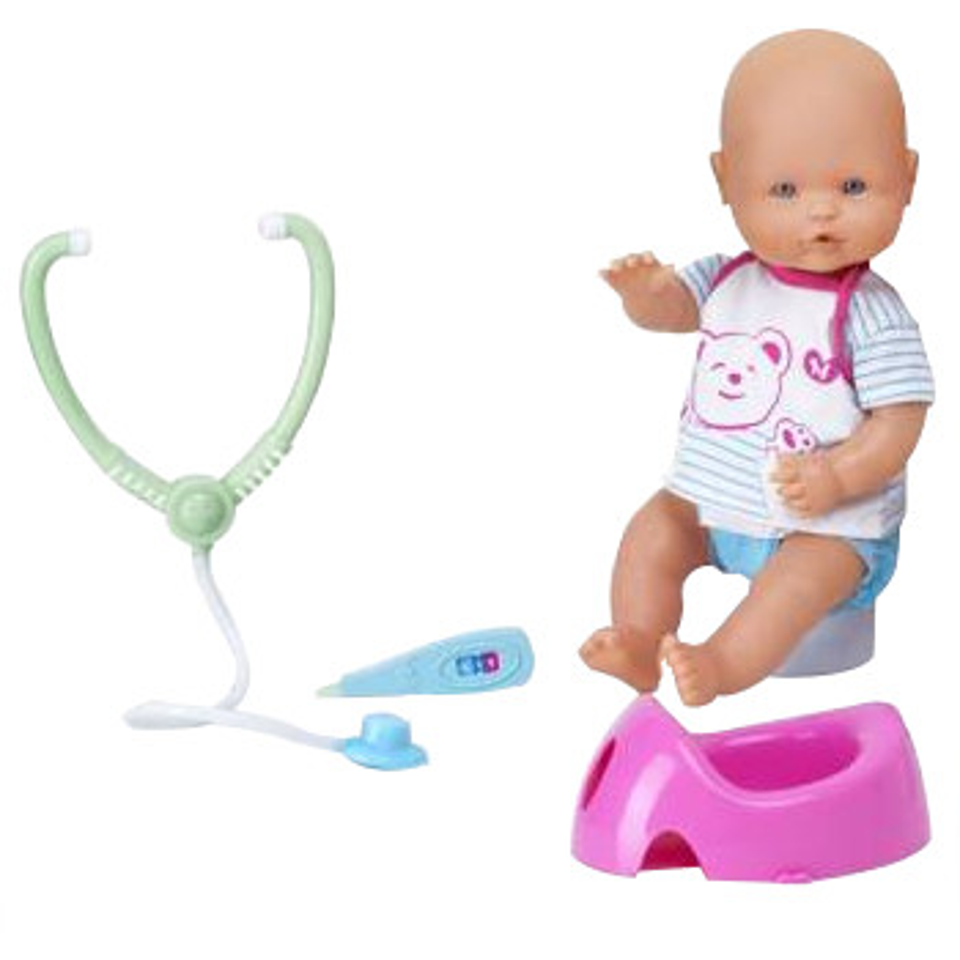 Oltre al bimbo Nenuco, il kit comprende vari accessori medici come stetoscopio, termometro e siringa per rendere il gioco più realistico e divertente.