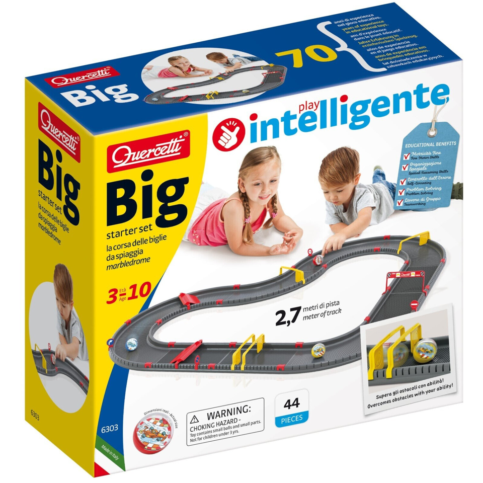 Il Quercetti Big Starter Set (6303) è una pista per biglie della serie Quercetti Play Intelligente. Adatta ai bambini dai 3 anni in su, questo set include 44 pezzi e 3 biglie, realizzati in legno e plastica di alta qualità.